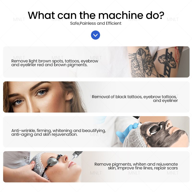 Flexible Use: Our laser machine is a one-stop solution for sketch dermatological applications, from tattoo removal to treating pigmentation or boosting skin health with its adaptable wavelength settings.