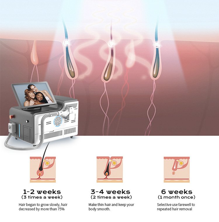 This portable 808 diode laser hair removal machine is perfect for mobile businesses or salons with limited space, providing professional results in a portable form factor.